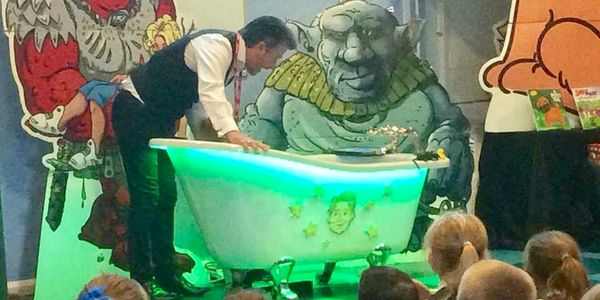 Click on the button above to find more information about David's inspirational visits to schools. Whether he is performing his amazing literacy showcase extravaganza in front of a whole school assembly or conducting inspirational workshops with smaller class groups ... his visits are guaranteed to enthuse and inspire children to read more books and write more stories!